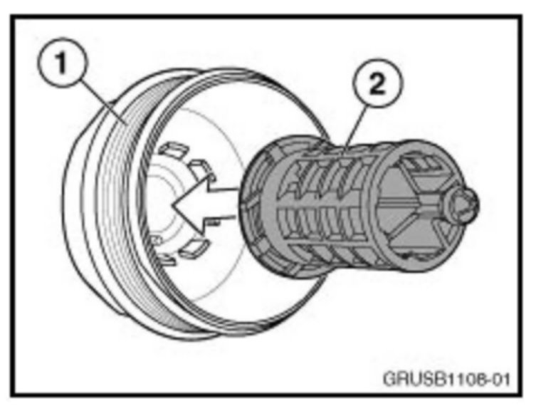 2. The oil filter cap insert may have been inadvertently removed during the vehicles last oil service. If this insert is not installed, it will result in non-filtered engine oil being supplied to the engine, thus possibly clogging or damaging the VANOS solenoids.