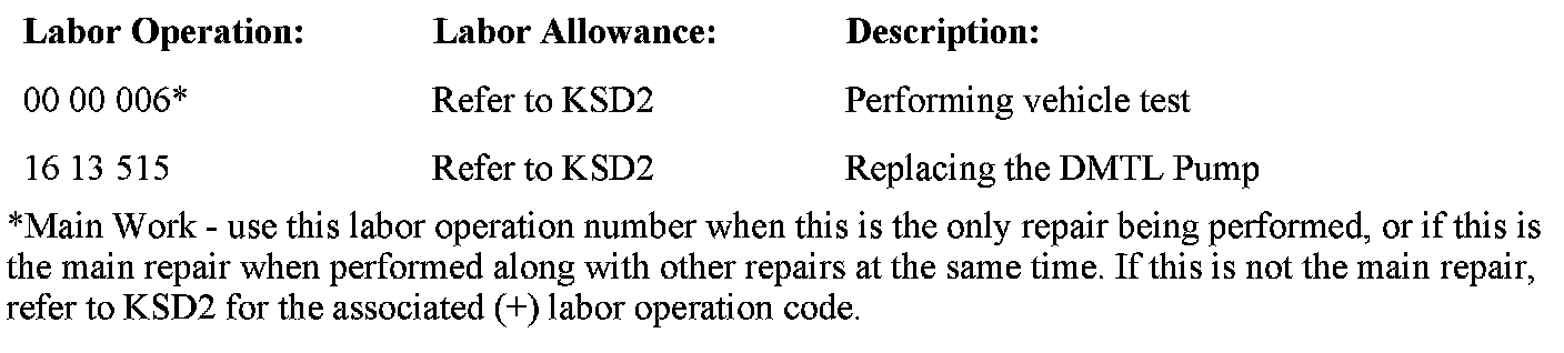 TeileClearing authorization is not required for the DMTL pump replacement procedure described in this bulletin. Please write in the comment section of the warranty claim: "Replaced per SI B12 19 10".