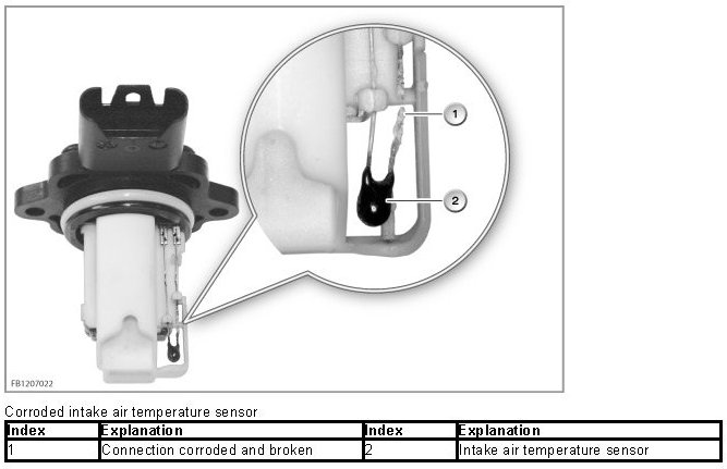 - Corrosion on the intake air temperature sensor that can lead to failure and causes a fault code memory entry.