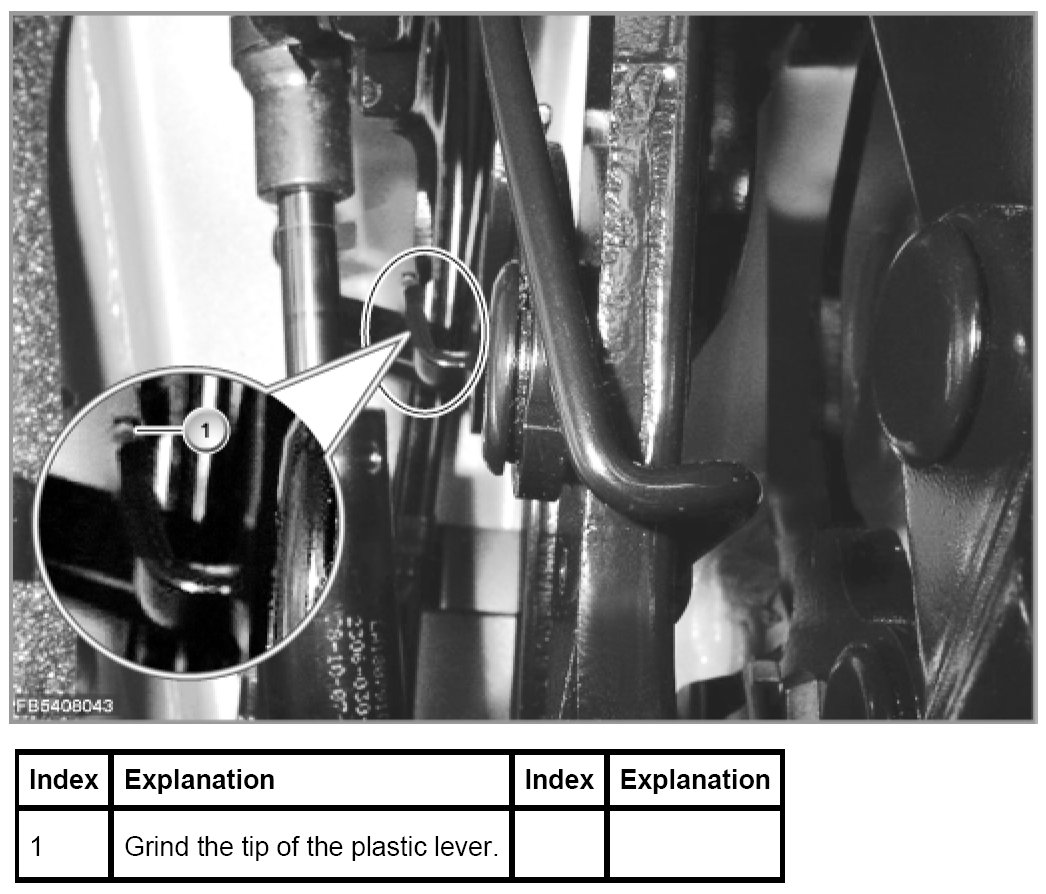 Due to tolerances, two levers in the convertible top mechanism can collide on moving the convertible top. Possibly, there is only a collision on one side, but for the sake of caution rework both sides.
