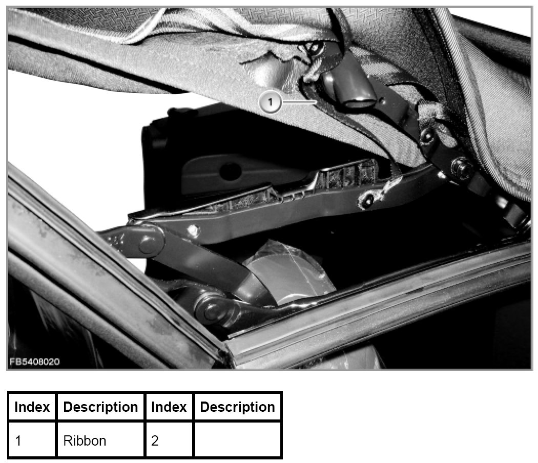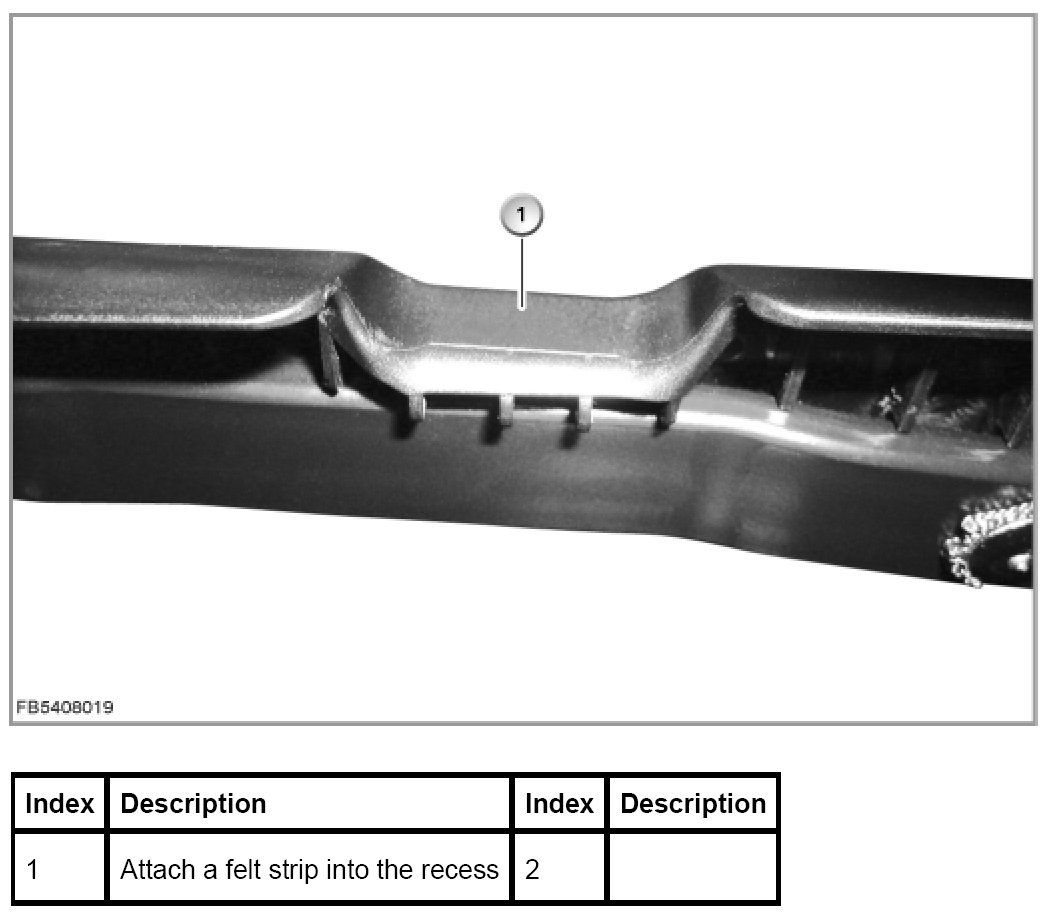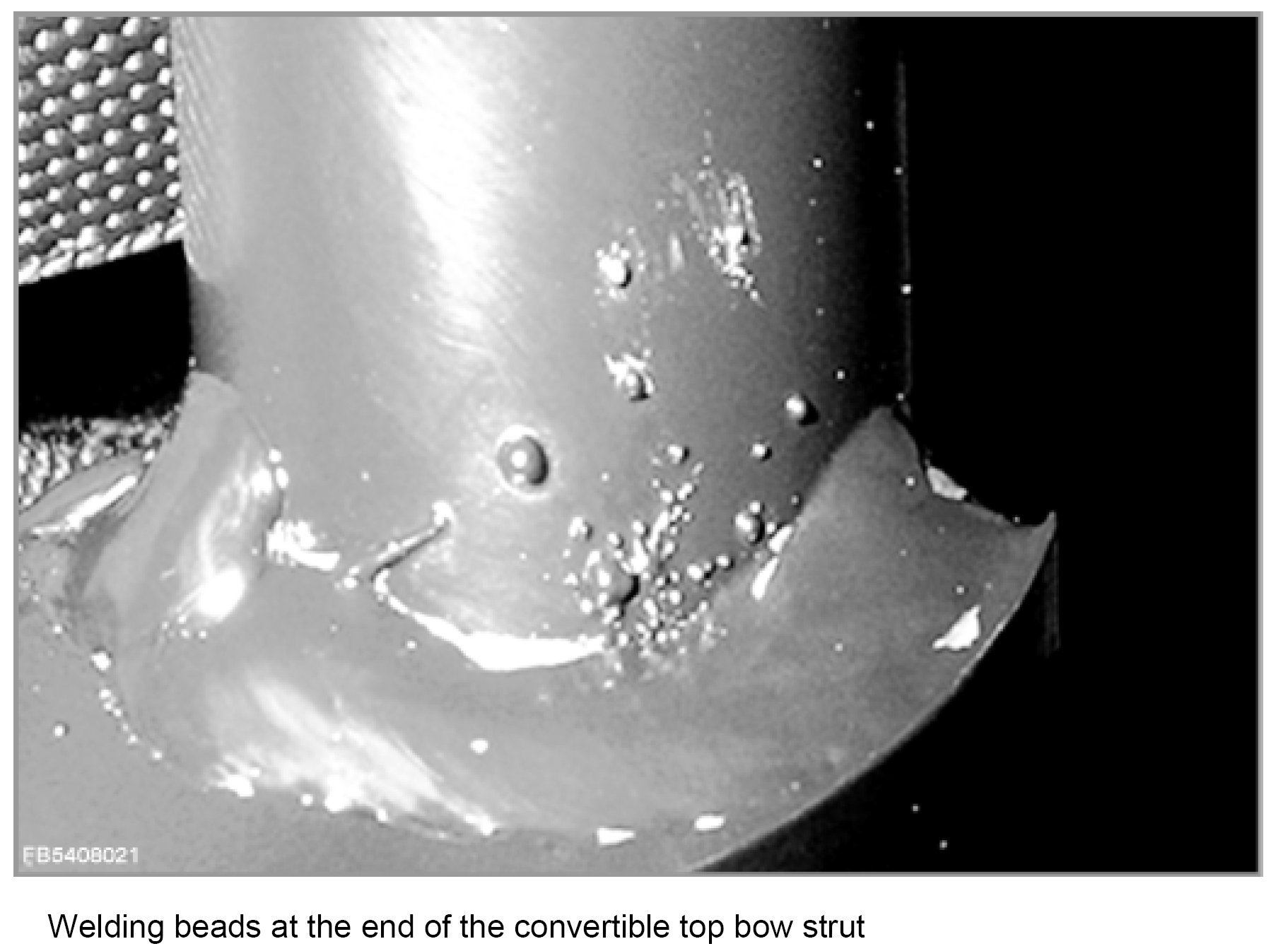 1. Check the end of the centre roof bow for welding beads. If there are welding beads, grind them off and repaint the bow, see illustration.