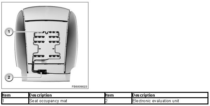 The passenger seat occupancy detection detects whether the seat is occupied or not. The seat occupancy mat consists of conductors and pressure sensors. The conductor tracks are connected to the electronic evaluation unit.