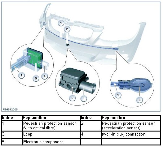 The following components are described for the pedestrian protection system: