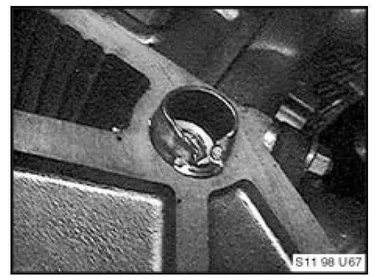 Before reinstallation of the transmission, the dowel sleeves must be removed from the transmission bell housing and installed in the engine block as outlined in the repair manual and shown in the illustration below.