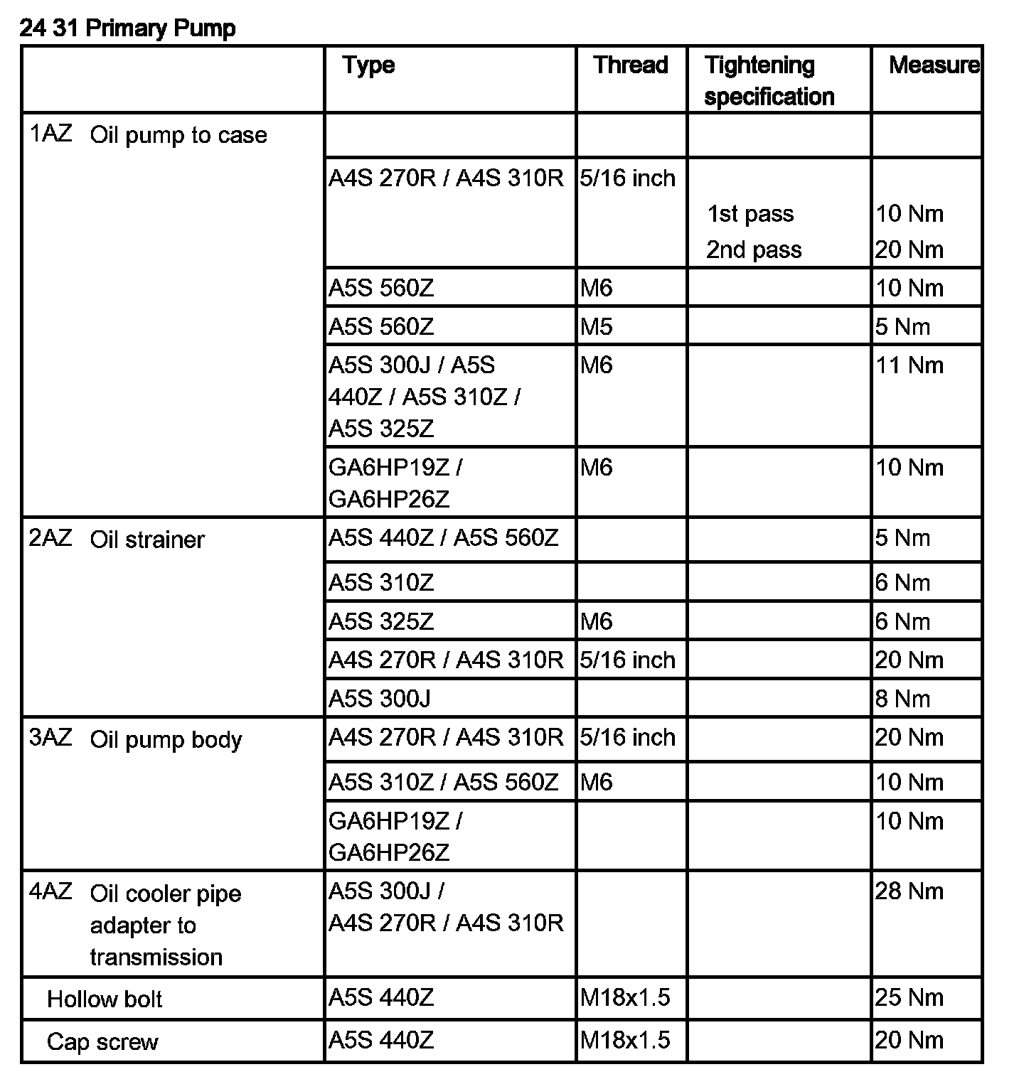 Tightening torque 24 31 3AZ.
