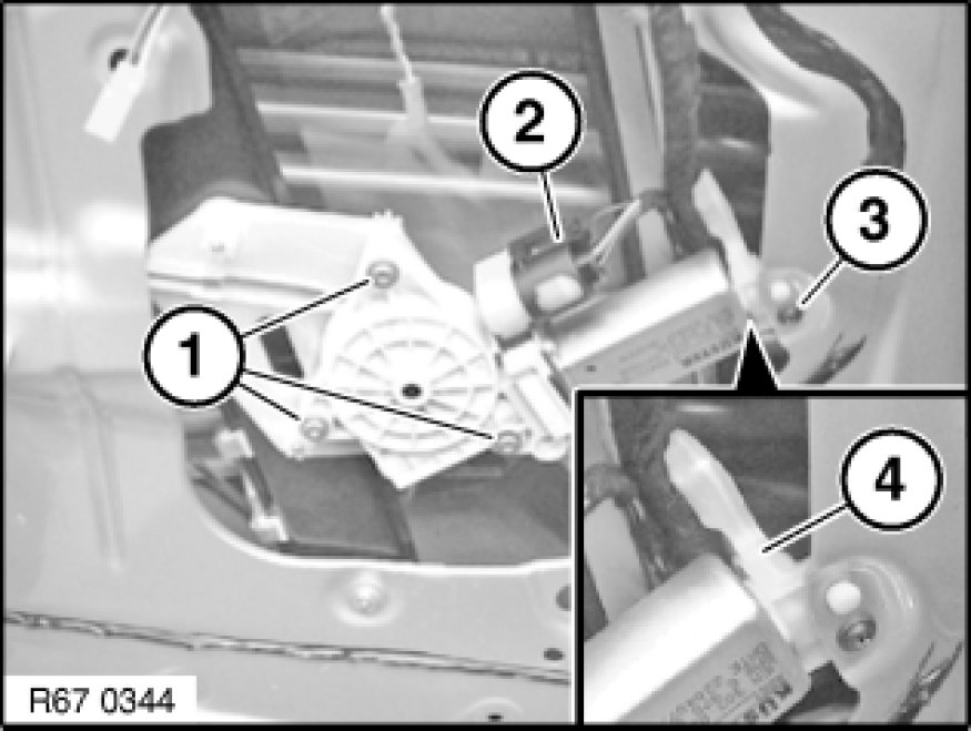 67 62 000 - Removing and installing or replacing flat motor for front left or right power window unit