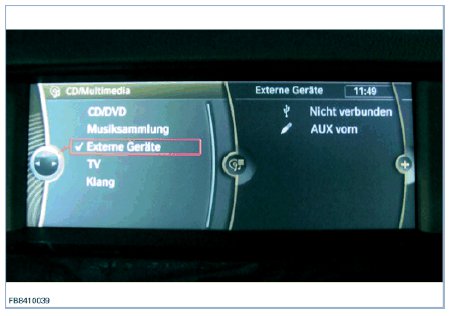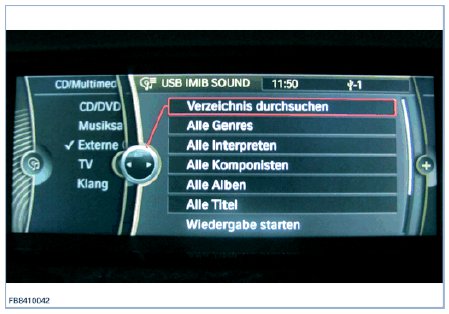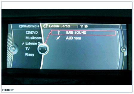 NOTE: Only perform the USB tests with the USB cable provided in the scope of delivery of the IMIB. Always perform USB tests directly at the USB connection of the vehicle. Do not use extension cables, USB hubs etc.