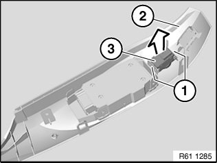 Expand catches (1) of cover (2), unclip switch for front lumbar support (3) in direction of arrow and remove.