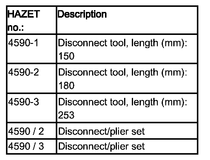 To disconnect coolant hoses, use commercially available disconnect tools such as HAZET(R) brand tools (see table).