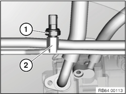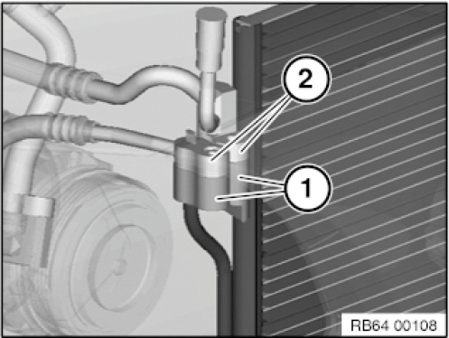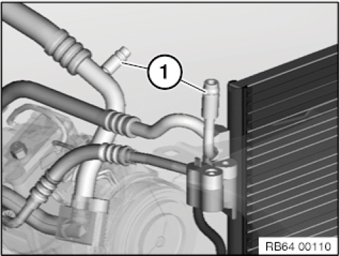 Check the sealing surface between the refrigerant pressure sensor (1) and the refrigerant line (2).