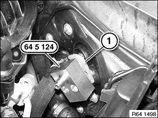 Screw special tool 64 5 124 together with retaining clip (1).