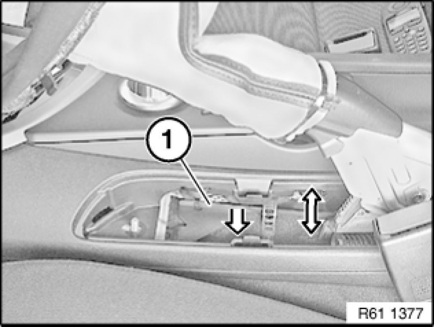 Lever gaiter (1) out of centre console with special tool 00 9 317 and slide upwards.