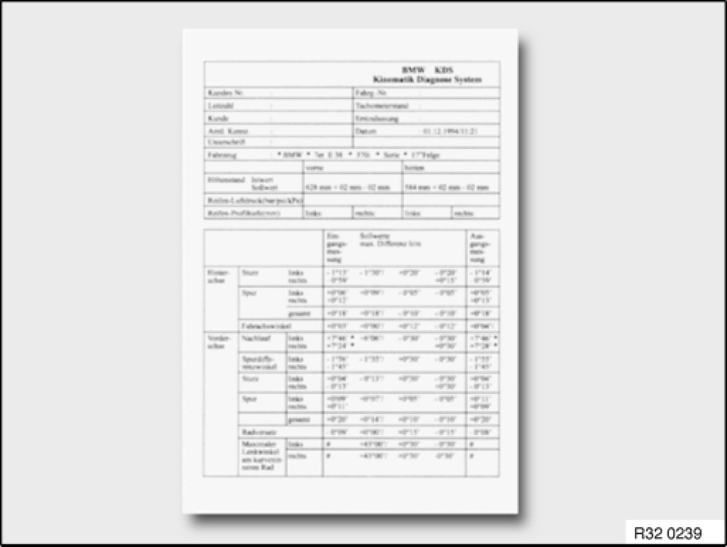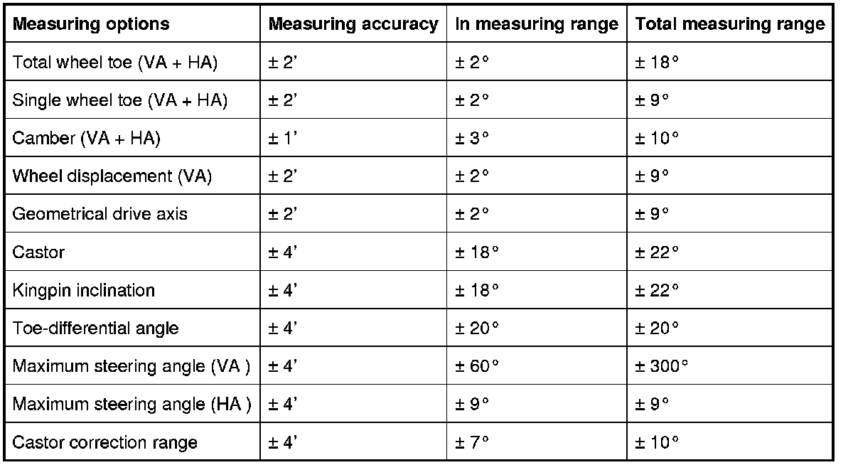 - The end section with all vehicle alignment values comprises the 3 columns initial measurement, setpoint values and output measurement. The measured values are recorded separately in these three columns.