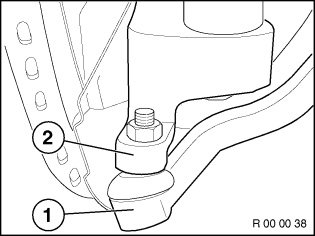 - Tie rod joint: There must be no play between the track-rod arm (2) and track rod joint (1)