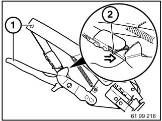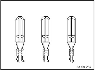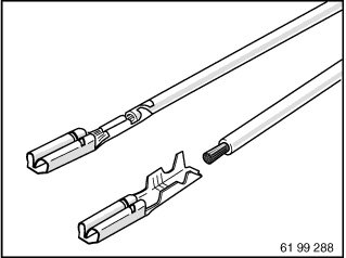 Special tool 61 9 041 (hand crimping tool) in conjunction with 61 9 042 (matrix) are used for pushing contact sleeves onto fan connectors.