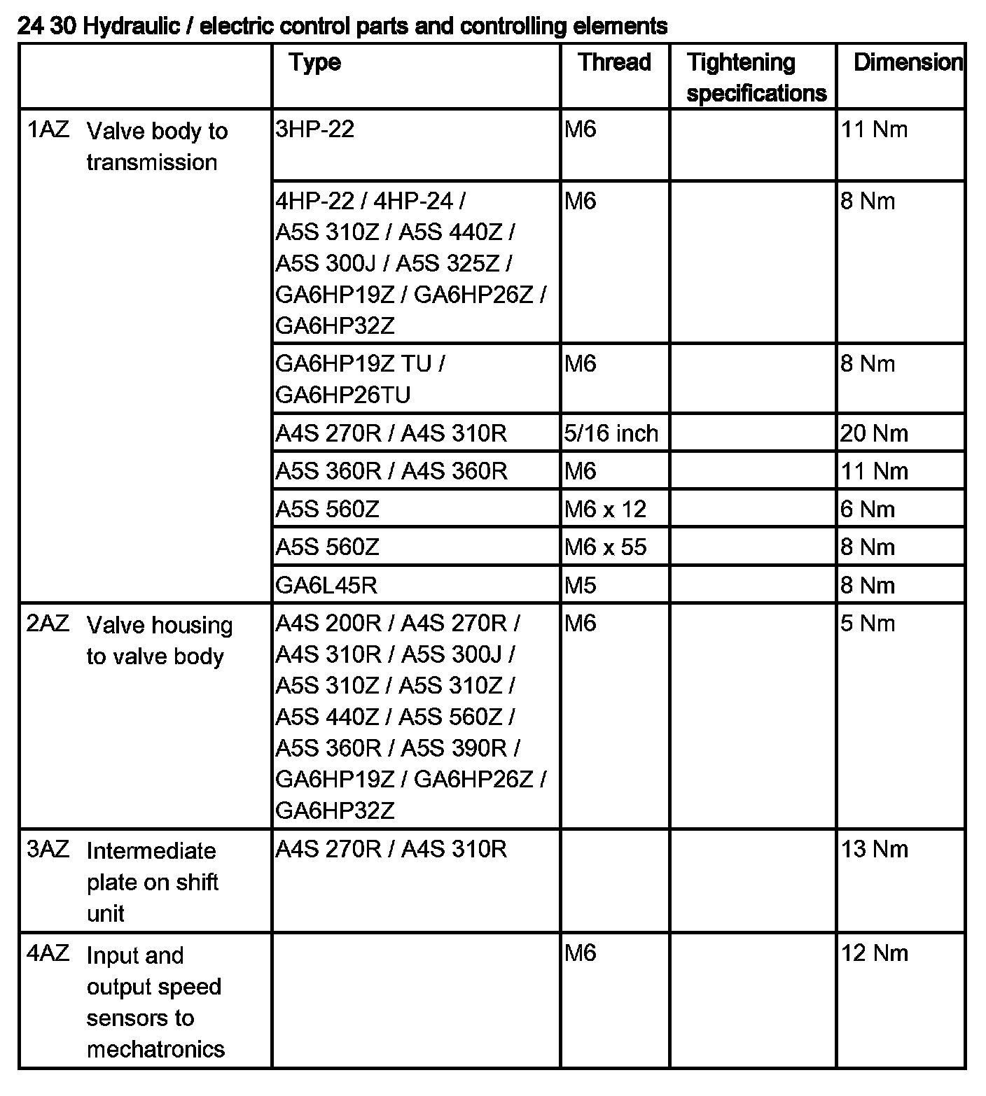 Tightening torque 24 30 1AZ.