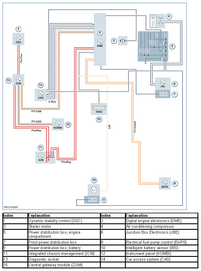 - Main bus systems: FlexRay, K-CAN, K-CAN2, MOST, PT-CAN and PT-CAN2