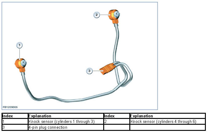 If multiple knock sensors are installed (e.g. with engine N55), the diagnostic function cannot detect and inadvertent mix-up of the two knock sensors. Installation of the knock sensors in the correct respective positions is of decisive importance for their correct operation. The length of the connecting cable and the distance to the cable connection identify the correct positions for the individual knock sensors. Ensure that the knock sensors are in the correct positions during installation3