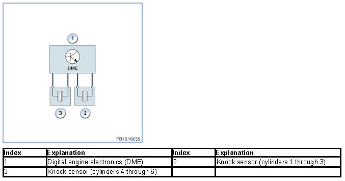 When knock persists over an extended period, the pressure waves from this violent combustion of the air-fuel mixture can cause mechanical and thermal damage to the head gasket, the pistons and the cylinder head itself. The knock sensors register the characteristic oscillations from combustion knock and convert them into electrical signals for transmission to the DME digital engine electronics system module. Within the DME module the signals are processed according to firing order to allow correlation with specific individual cylinders.