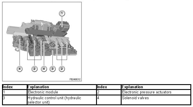 The electronic pressure control valves convert an electrical current specified by the EGS control unit into a proportional hydraulic pressure.