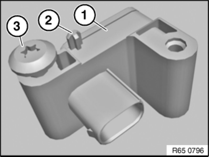 Establish correct positioning of B-pillar sensor (1) by means of guide pin (2) and screw (3).