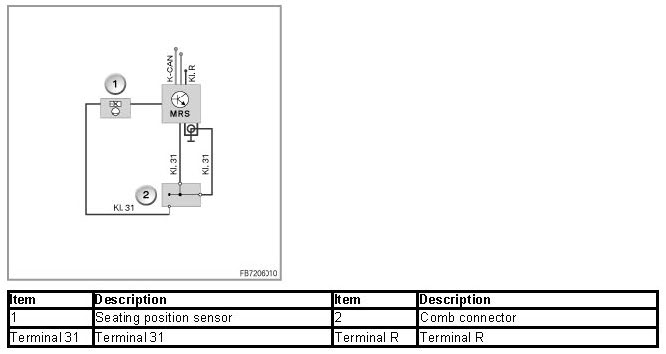 The seating position sensor is a Hall sensor and it is supplied with voltage via the ACSM control unit. The current intensity changes depending on the distance of the seat position switch to the magnet holder.