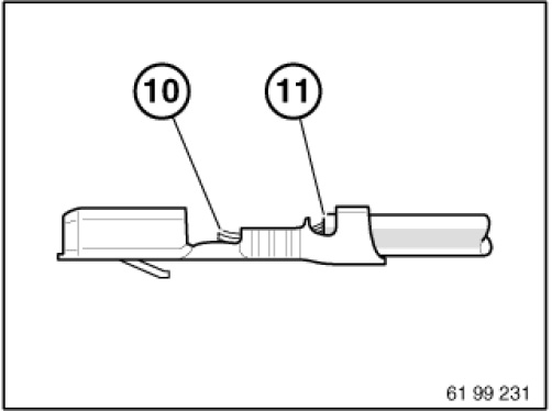 Insert stripped end of wire (7) in the contact. Ensure insulation and stripped wire end are correctly laid in contact.