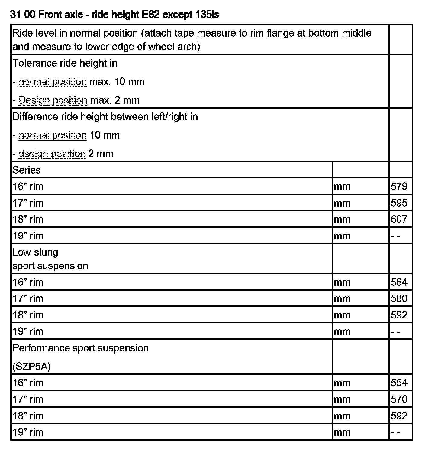 31 00 Front Axle - Ride Height E82 Except 135is