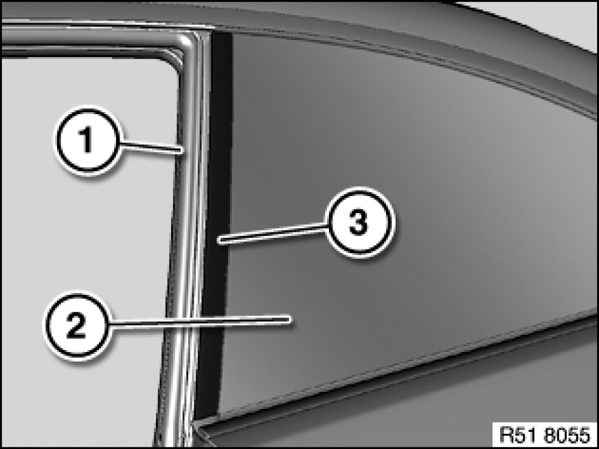 If Sika Cleaner 205 is applied to the visible area of the side window, this will create a gleaming lining which suggests a separation of the ceramic layer.