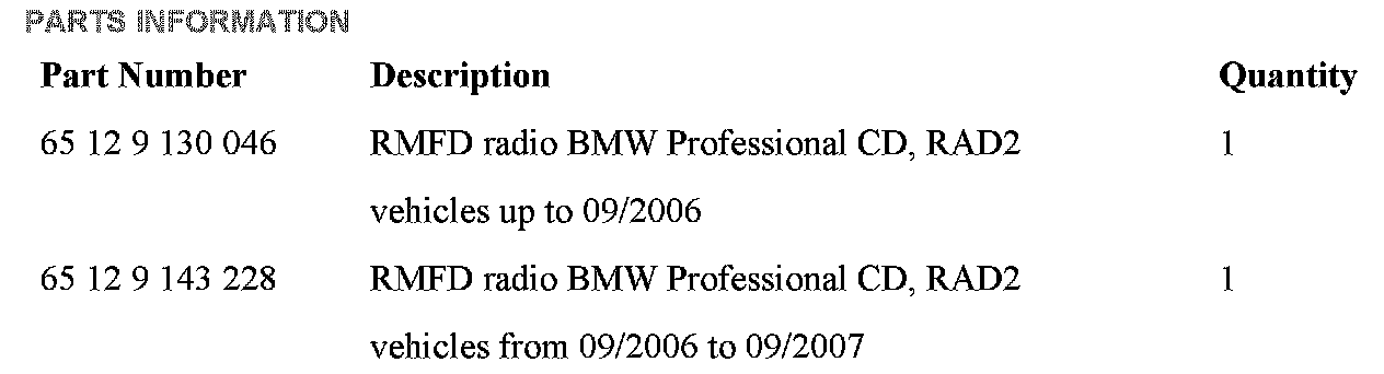 PARTS INFORMATION