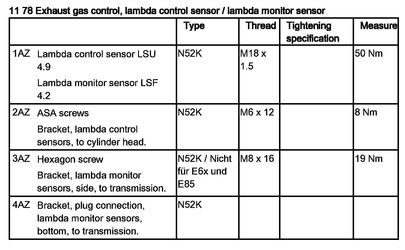 11 78 Exhaust Gas Control, Lambda Control Sensor / Lambda Monitor Sensor