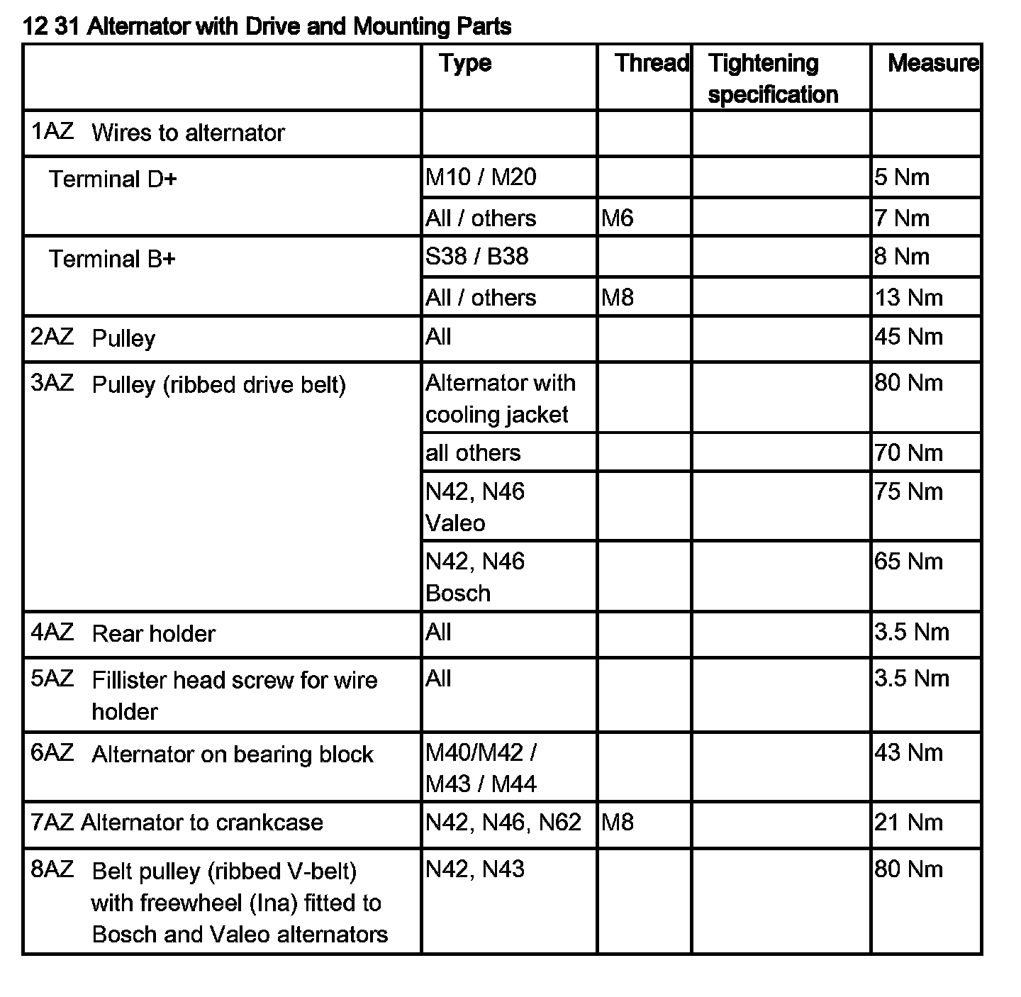 Tightening torque 12 31 2AZ.