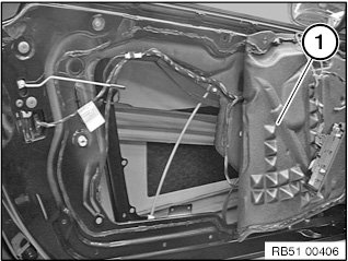 NOTE: To remove door lock, move rear section of sound insulation (1) toward centre.
