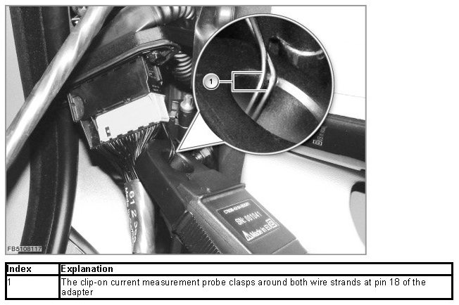 Synchronizing the 100A clip-on current measurement probe. During the adjustment, the clip-on current measurement probe must not clasp around any strands of wire. The adjustment must be carried out for each individual door lock.