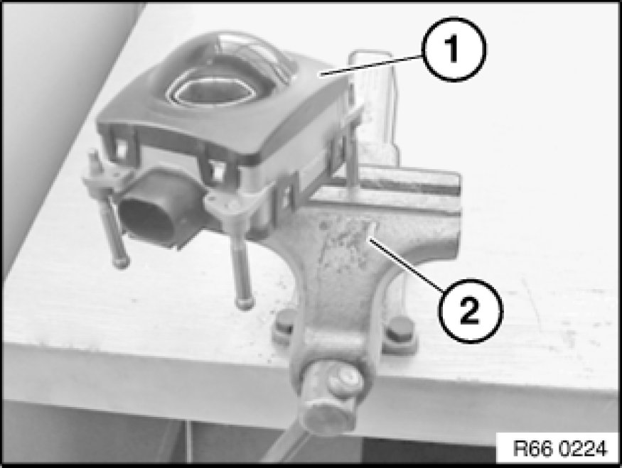 Grip sensor housing (1) by screw in a vice (2).