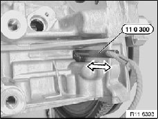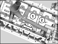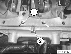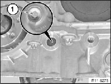 Drive both injector nozzles (1) on left and right with special tool 11 9 360 into crankcase up to stop.