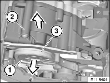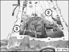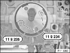 Release screw (1) for oil pump triangular drive with special tool 11 8 640.