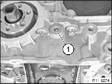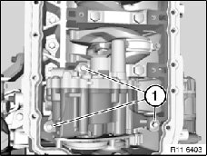 Tighten screw (1) for oil pump triangular drive with special tool 11 8 640.