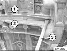 Release crankcase lower section (1) from crankcase upper section (2) with suitable tool (3)