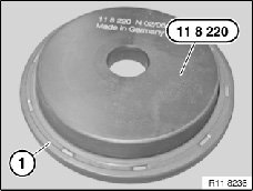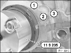 Position radial shaft seal (1) with special tool 11 8 220 on the crankshaft.