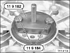 Screw special tool 11 9 182 with screws (special tool 11 9 184 ) to crankshaft.