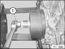Screw special tool 11 9 235 with special tool 11 9 234 on crankshaft.