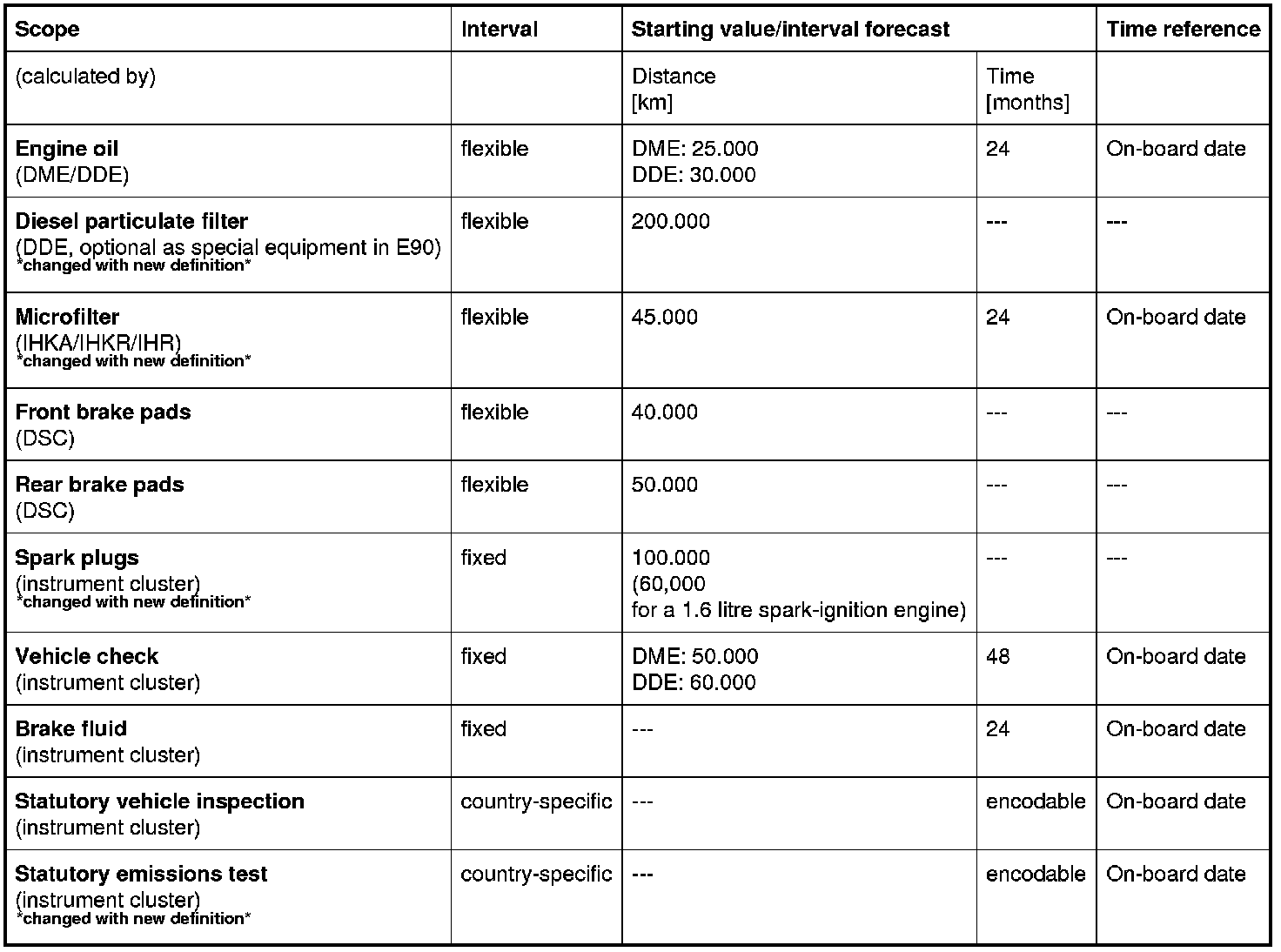The distance-dependent and time-dependent interval for the vehicle check is managed in the instrument cluster (48 months and DME: 50,000 km, DDE: 60,000 km).