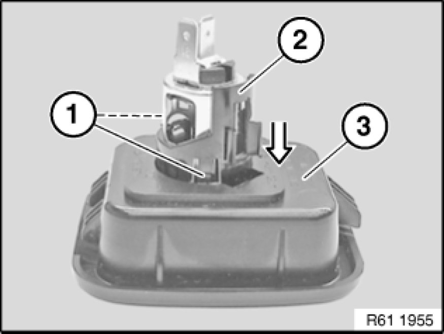 Unlock catches (1) with a suitable tool and feed socket receptacle (2) in direction of arrow out of socket frame (3).
