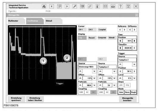 - Quiescent current can also be measured in "Normal" mode (Record deactivated). However, the display can then only show readings in the indication range covering a period up to 33 minutes (200 s/Div).