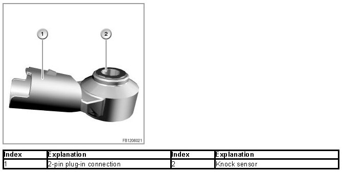 The knock sensor detects the combustion knock. The knocking is detected on a cylinder-selective basis by the DME control unit.