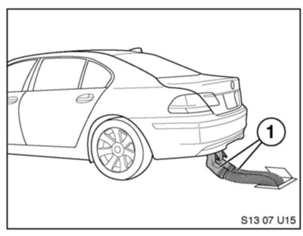 15. Connect the vehicle to the exhaust removal system.