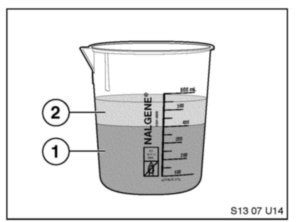 5. Pour 400 ml of fuel (1) and 150 ml of cleaner concentrate (2) into the beaker supplied in the kit.