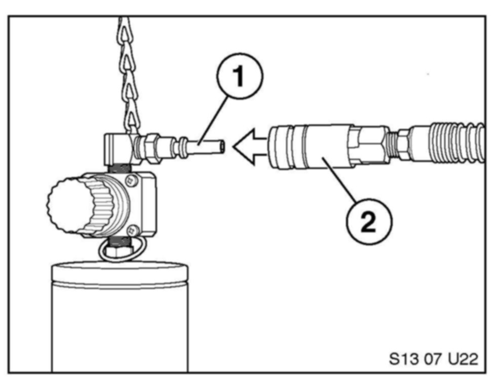 14. Connect the shop air supply (2) to the application cylinder (1).