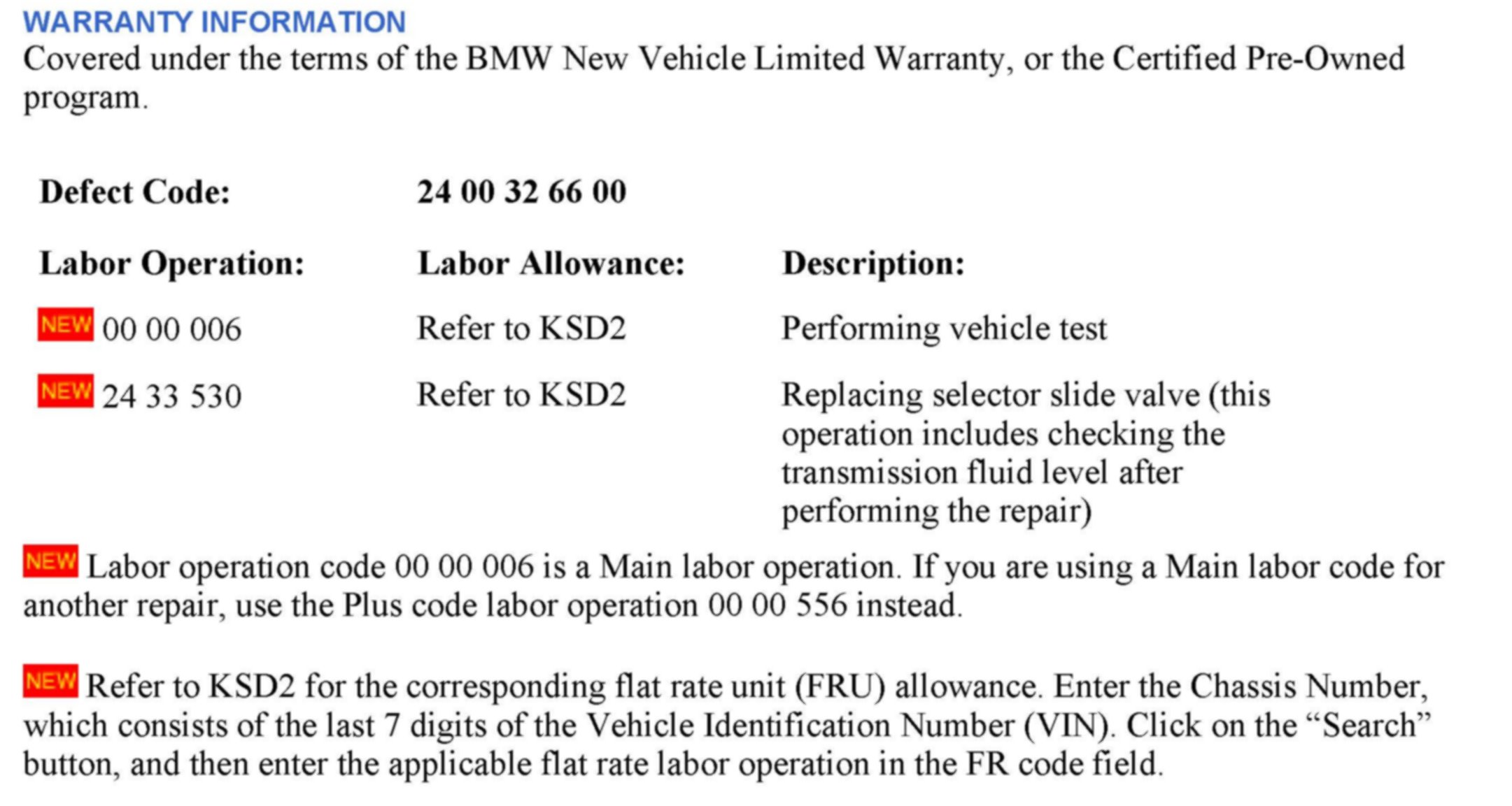 [NEW] In order to properly confirm the diagnosis, it is recommended to submit a PuMA case to the GM Transmission group with all of the required information, SI B24 24 07.